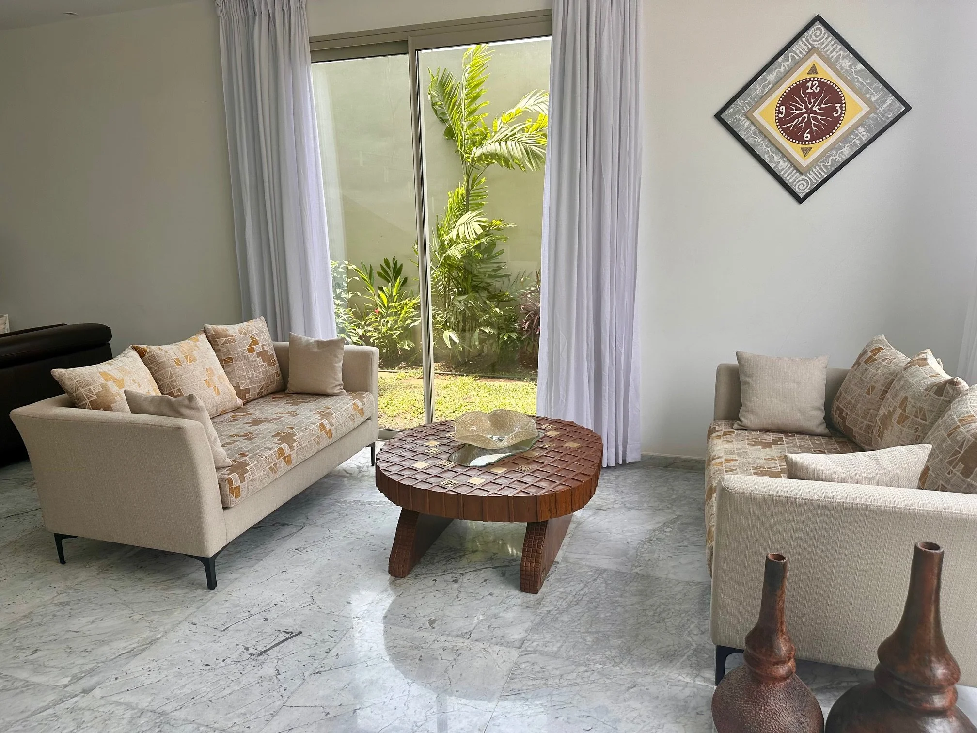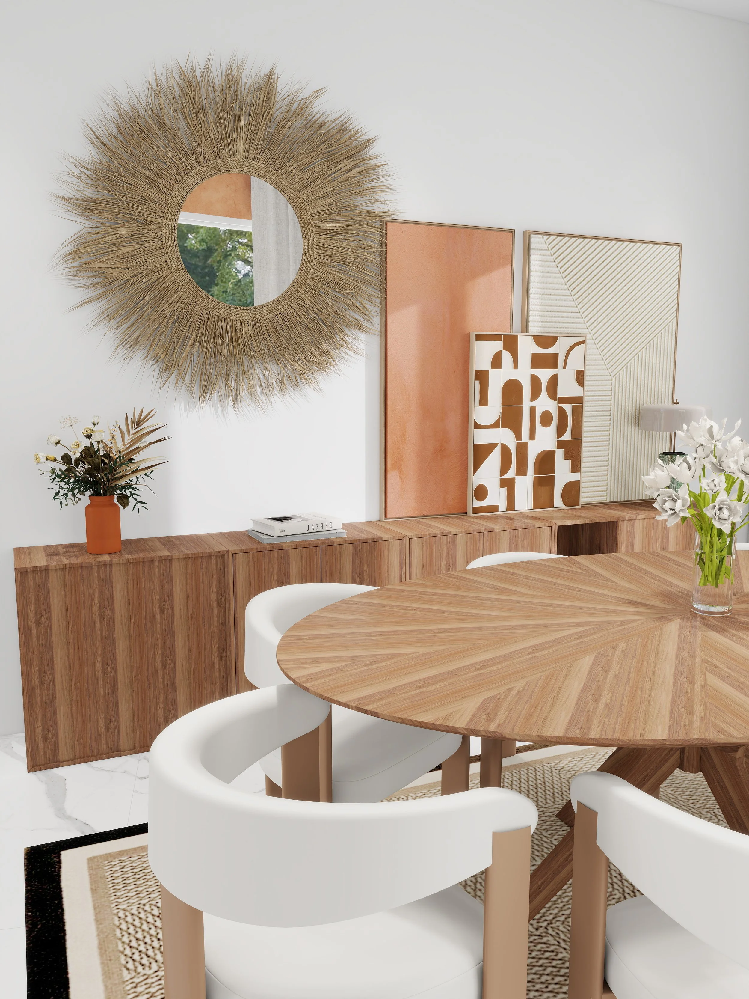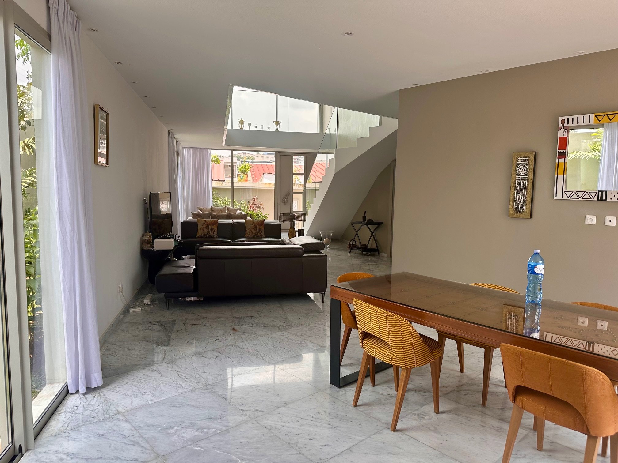 Installée en Côte d’Ivoire, ma cliente souhaitait donner plus de chaleur et de vie à sa grande pièce de 80 m², résolument moderne et épurée. Son envie : un intérieur coloré, accueillant et authentique, en harmonie avec l’architecture contemporaine de la maison.