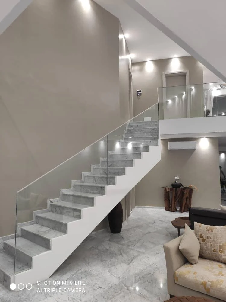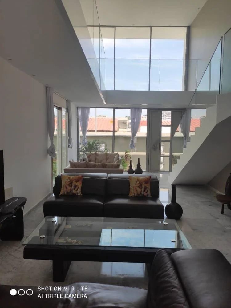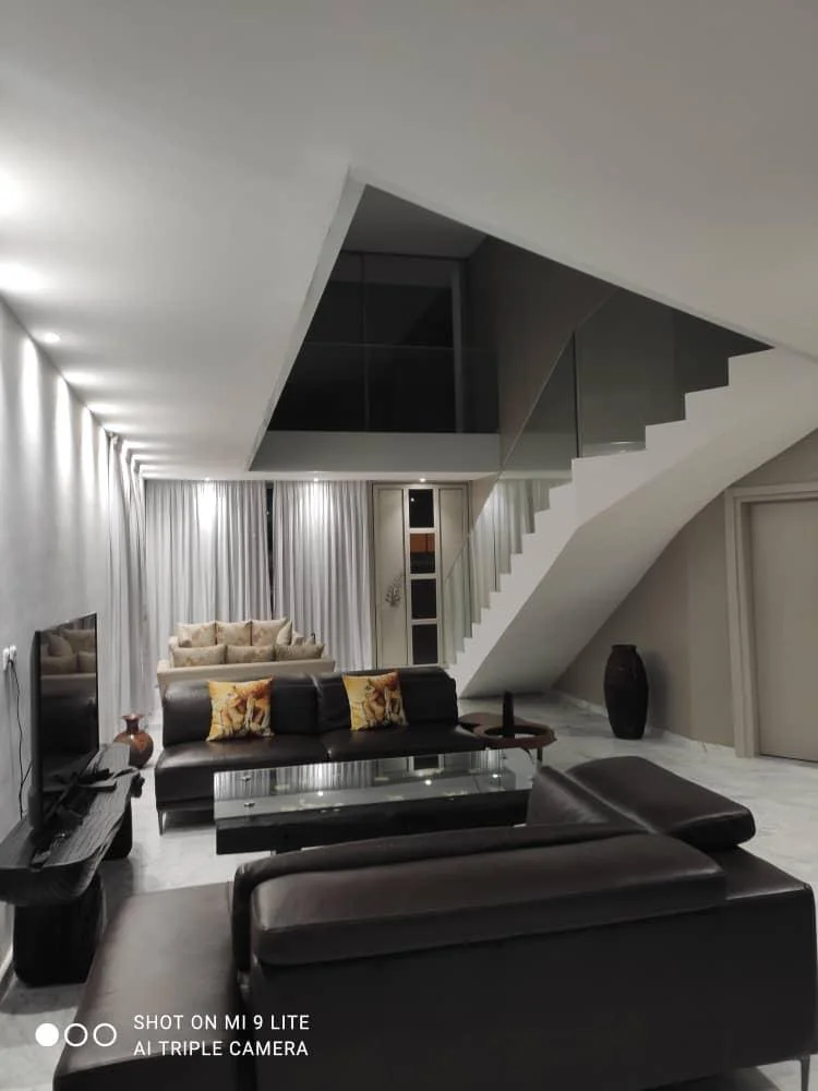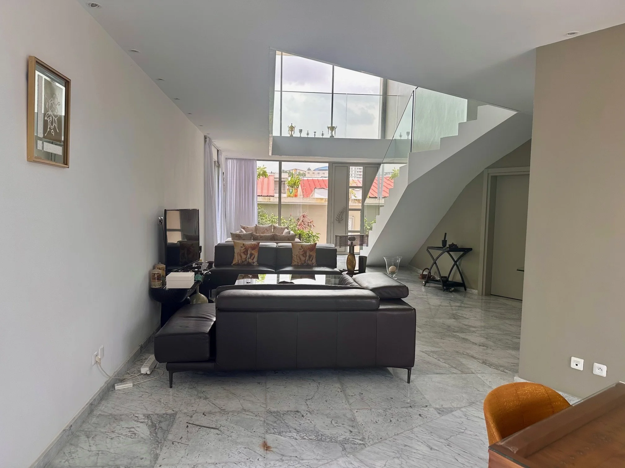 J’ai travaillé à distance sur l’aménagement et la décoration, en valorisant les volumes généreux, le sol en marbre blanc et la hauteur sous plafond impressionnante. Pour équilibrer ce cadre très moderne, j’ai introduit des pièces artisanales fortes, des textures naturelles et une palette audacieuse de couleurs. Chaque élément a été choisi pour créer une atmosphère à la fois conviviale, élégante et pleine de caractère.